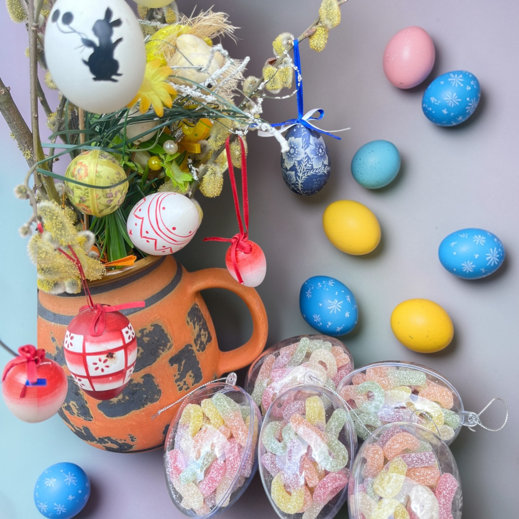 cukor, glükózszirup, víz, zselatin, savanyító (E270, E330, E296, E350), aromák, spirulina és pórsáfrány koncentrátum, szőlőkoncentrátum, fekete sárgarépalé-koncentrátum, színezékek (E100, E160c)
